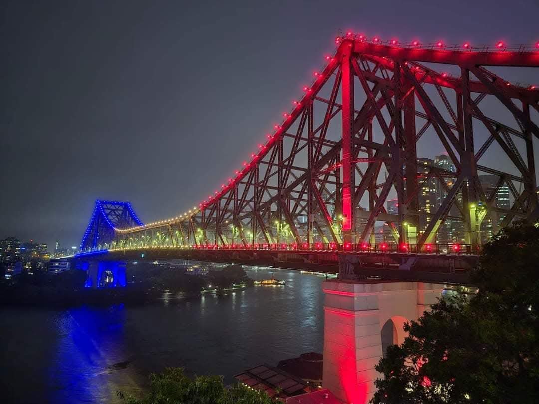 Într-un eveniment fără precedent, pe data de 30 noiembrie 2024, Brisbane, capitala statului Queensland, a fost luminată în culorile tricolorului românesc pentru prima dată. Acest moment istoric a transformat orașul într-un spectacol de roșu, galben și albastru. Printre reperele iluminate s-au numărat Story Bridge, Victoria Bridge, clădirea Parlamentului, întregul cartier Queen’s Wharf, precum și emblematicul Neville Bonner Bridge și Breakfast Creek Bridge. Acest act simbolic de respect din partea statului australian onorează comunitatea românească și istoria sa, marcând un moment de mândrie și solidaritate între cele două națiuni.
